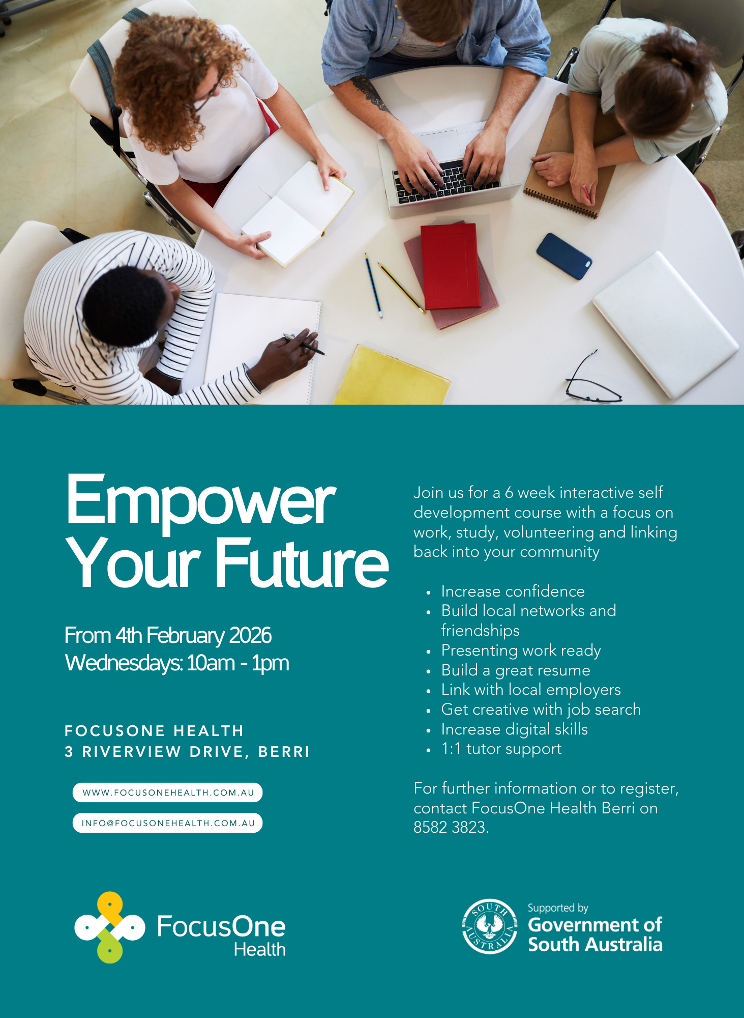 Registrations are now open for our Empower Your Future program. Four programs will run through 2026 across Renmark and Berri. If you would like to register for this program, please call 8582 3823 or complete the referral form below.